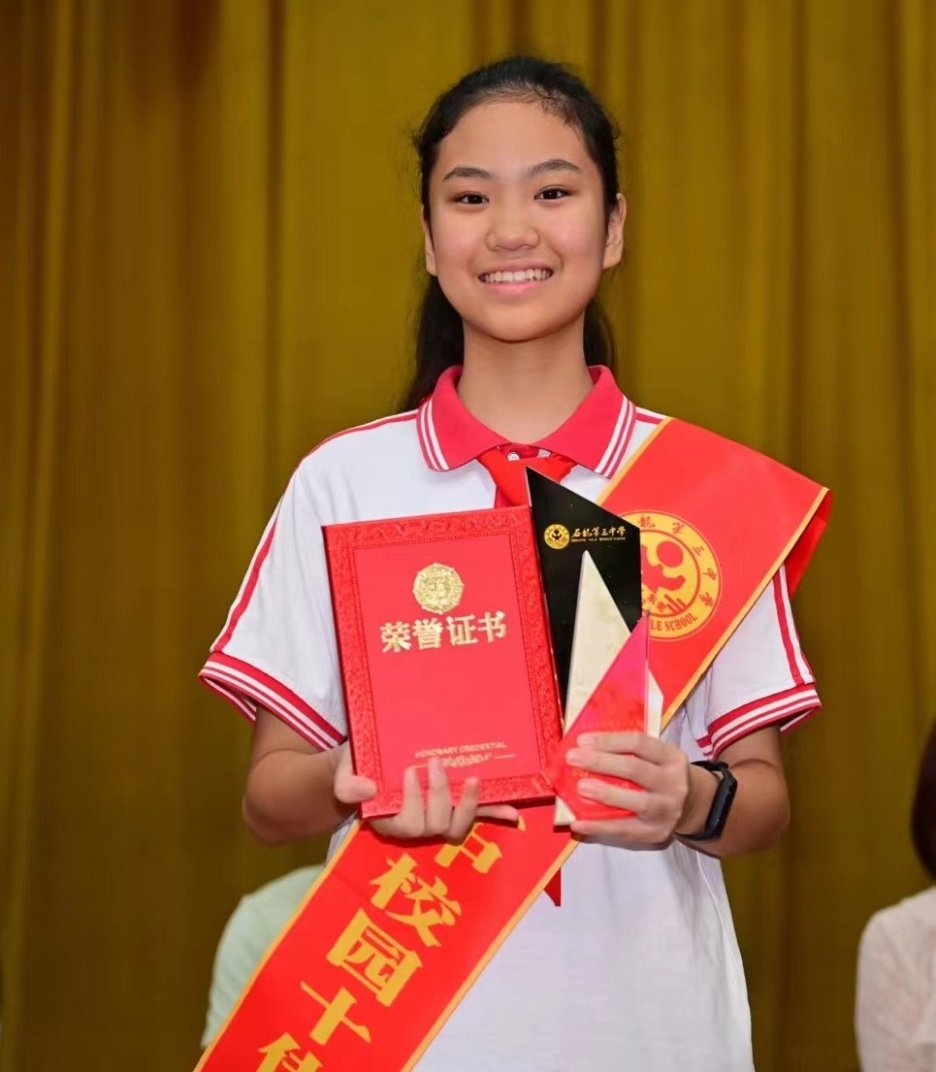 在学校组织的屡次大型行动中齐可以看到她的身影,诗玥当今担任学校学生会通知长,在班里担任班长、语文课代表和感情课代表,作为又名班干部,她知说念肩上的牵累重,是以在各个方面她齐严格条目我方,事事齐要为人师表。